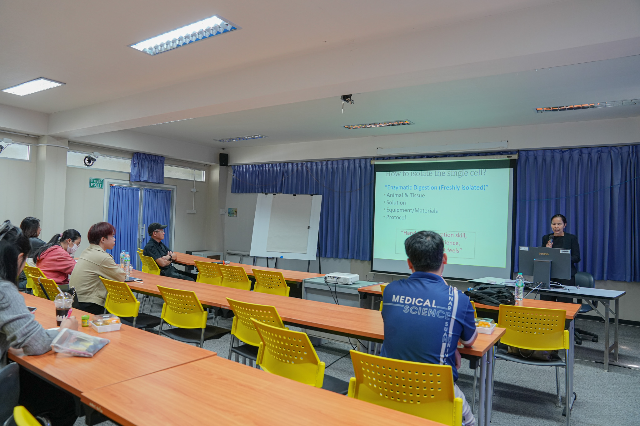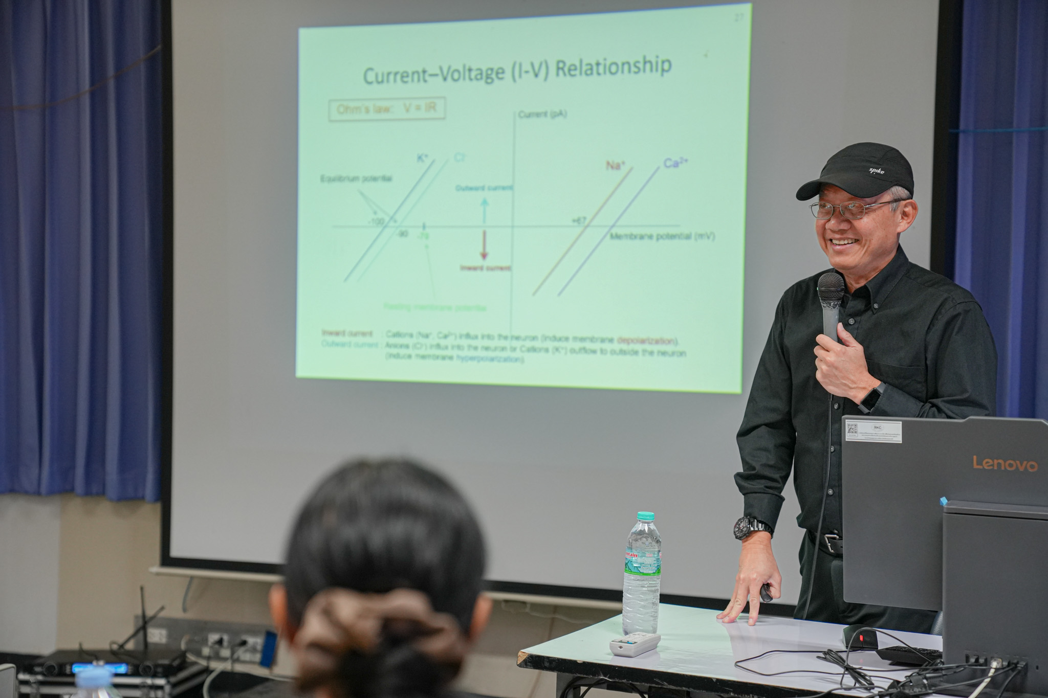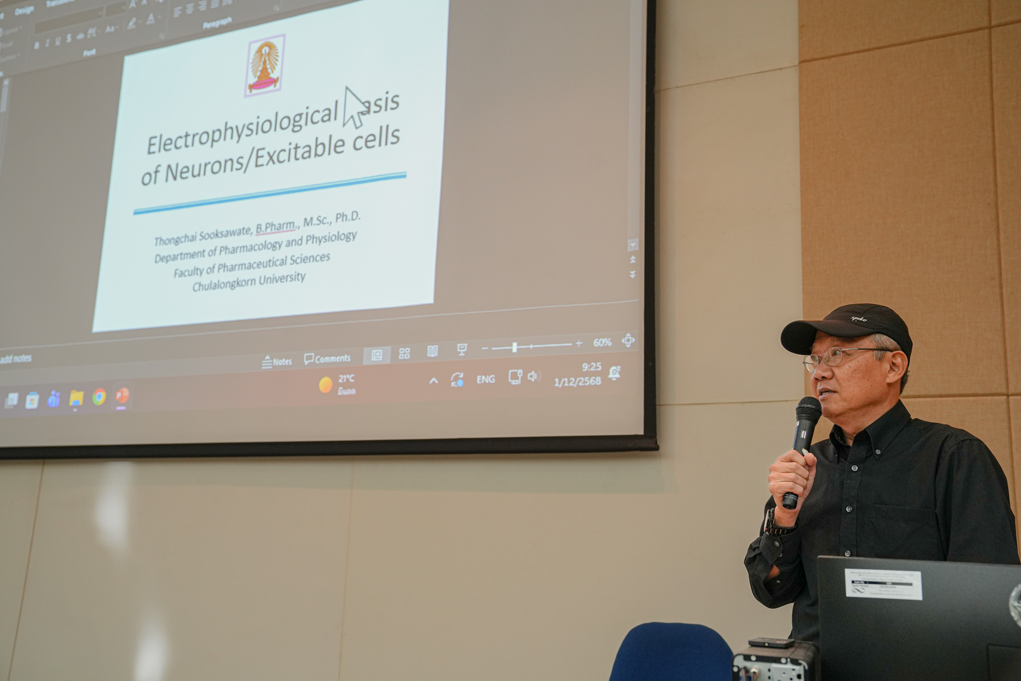 ผู้ช่วยศาสตราจารย์ ดร.ภาคภูมิ ทรัพย์สุนทร รองคณบดีฝ่ายวิจัยและนวัตกรรม พร้อมด้วย บุคลากรสถานบริการวิชาการด้านวิทยาศาสตร์การแพทย์ ร่วมกับภาควิชาสรีรวิทยา คณะวิทยาศาสตร์การแทพย์ ดำเนินการจัดโครงการอบรมเชิงปฏิบัติการด้านเครื่องมือวิทยาศาสตร์ หัวข้อเรื่อง “Patch Clamp Technique and Research Applications” ในระหว่างวันที่ 1 – 4 ธันวาคม 2568 โดยได้รับเกียรติจากวิทยากรผู้ทรงคุณวุฒิ ได้แก่ รองศาสตราจารย์ ดร.ภก.ธงชัย สุขเศวต (จากภาควิชาเภสัชวิทยาและสรีรวิทยา คณะเภสัชศาสตร์ จุฬาลงกรณ์มหาวิทยาลัย Department of Neuroscience, Graduate School of Medicine, Kyoto University) และทีมนักวิจัยมหาวิทยาลัยนเรศวร รองศาสตราจารย์ ดร.ภญ.กรองกาญจน์ ชูทิพย์ และ ดร.กิติณัฐ รอดทองดี (ภาควิชาสรีรวิทยา คณะวิทยาศาสตร์การแพทย์) และ ผู้ช่วยศาสตราจารย์ ดร.มณฑาทิพย์ ภูมิวณิชชา (ภาควิชาเทคโนโลยีหัวใจและทรวงอก คณะสหเวชศาสตร์ มหาวิทยาลัยนเรศวร) จัดโดย ห้างหุ้นส่วนจำกัด เอส สแคว เอ็นเตอร์ไพรส์) ณ ห้อง MD 237, ห้อง MD 502/1 และห้องปฏิบัติการ MD 502/2 อาคารเรียนคณะวิทยาศาสตร์การแพทย์ มหาวิทยาลัยนเรศวร