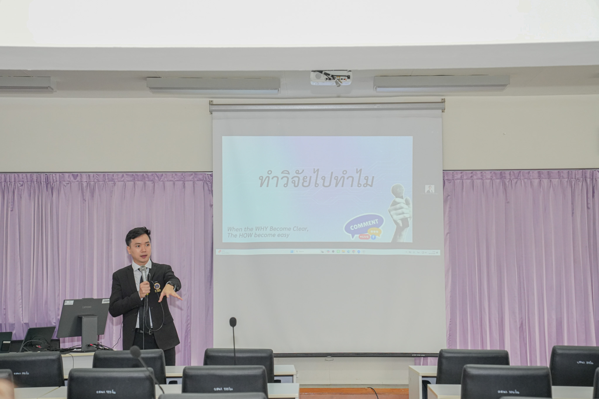 ทั้งนี้ ยังได้รับเกียรติจาก ศาสตราจารย์ ดร.เภสัชกรหญิงกรกนก อิงคนินันท์ รองอธิการบดีฝ่ายพัฒนางานวิจัยและนวัตกรรม พร้อมด้วย ดร.ยุทธพงษ์ ทองพบ ผู้ช่วยอธิการบดีฝ่ายพัฒนางานวิจัยและนวัตกรรม คณาจารย์ และบุคลากร จากหน่วยงานต่างๆ เข้าร่วมรับฟังการบรรยายในครั้งนี้ด้วย